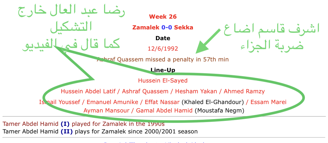 ومما يؤكد على صحة الواقعه وصدق كلام رضا عبد العال هو انه كان بالفعل هناك مباراه بين الزمالك والسكه الحديد في الاسبوع ال 26 من موسم 91/92 وكان رضا عبد العال خارج تشكيل المباراه، وكانت اخر مباراه في الموسم وبالفعل هبط المقاولون في هذا الموسم الى الدرجه الثانيه.